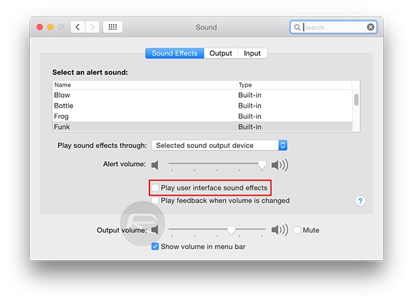 Để các âm báo có thể khiến bạn nghe vui tai hơn nhưng nếu cảm thấy pin máy sụt quá nhanh thì bạn nên tắt bỏ âm thanh cho máy. Cách này được khá nhiều người dùng sử dụng vì nó hạn chế được tiêu thụ pin lớn. Cách thực hiện với click “System Preferences > Sound và bỏ chọn ‘Play user interface sound effects box”.